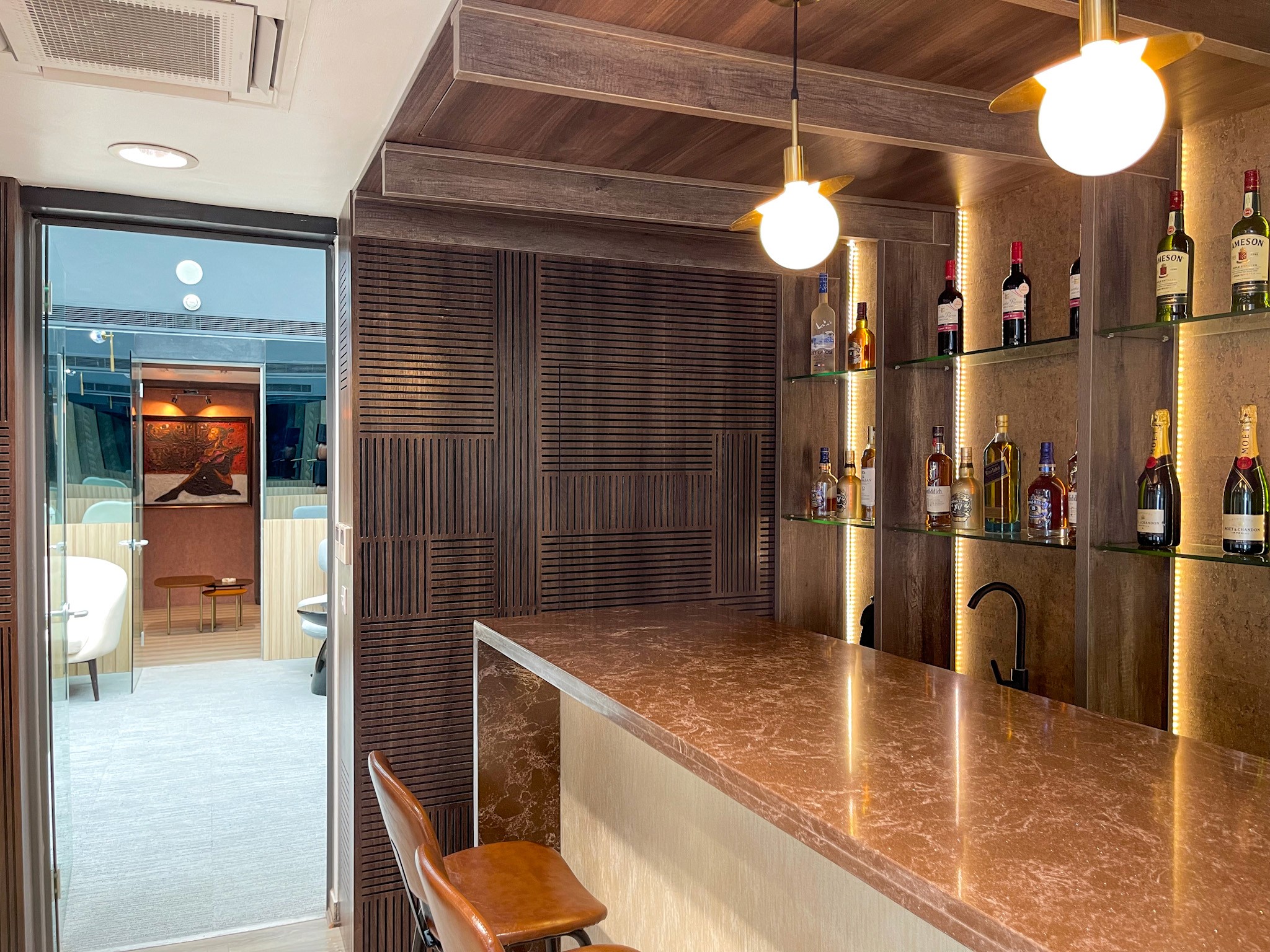 Welcome to Wine and Whiskey lounge, where Otito Studio meticulously crafted a luxurious yet relaxed lounge, radiating sophistication and charm. Every aspect of the design identity was carefully curated to infuse the space with a culture-rich narrative and a sophisticated sensibility.